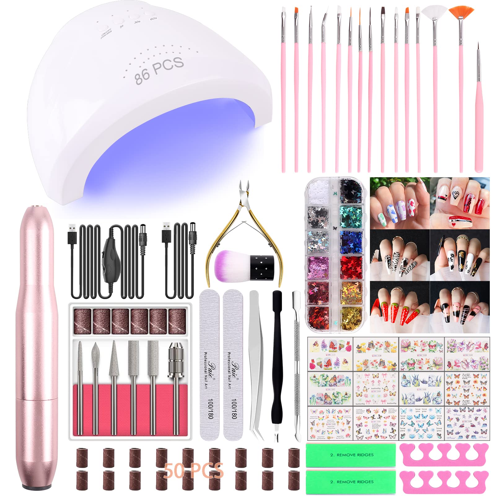 86PCS Acrylic Nail Kit Set with Everything, Professional Electric Nail Drill Machine 48W UV LED Nail Lamp Gel Dryer Lamp, Nail Supplies Art Brushes Decoration Nail Efile Tools for Acrylic Gel Nails