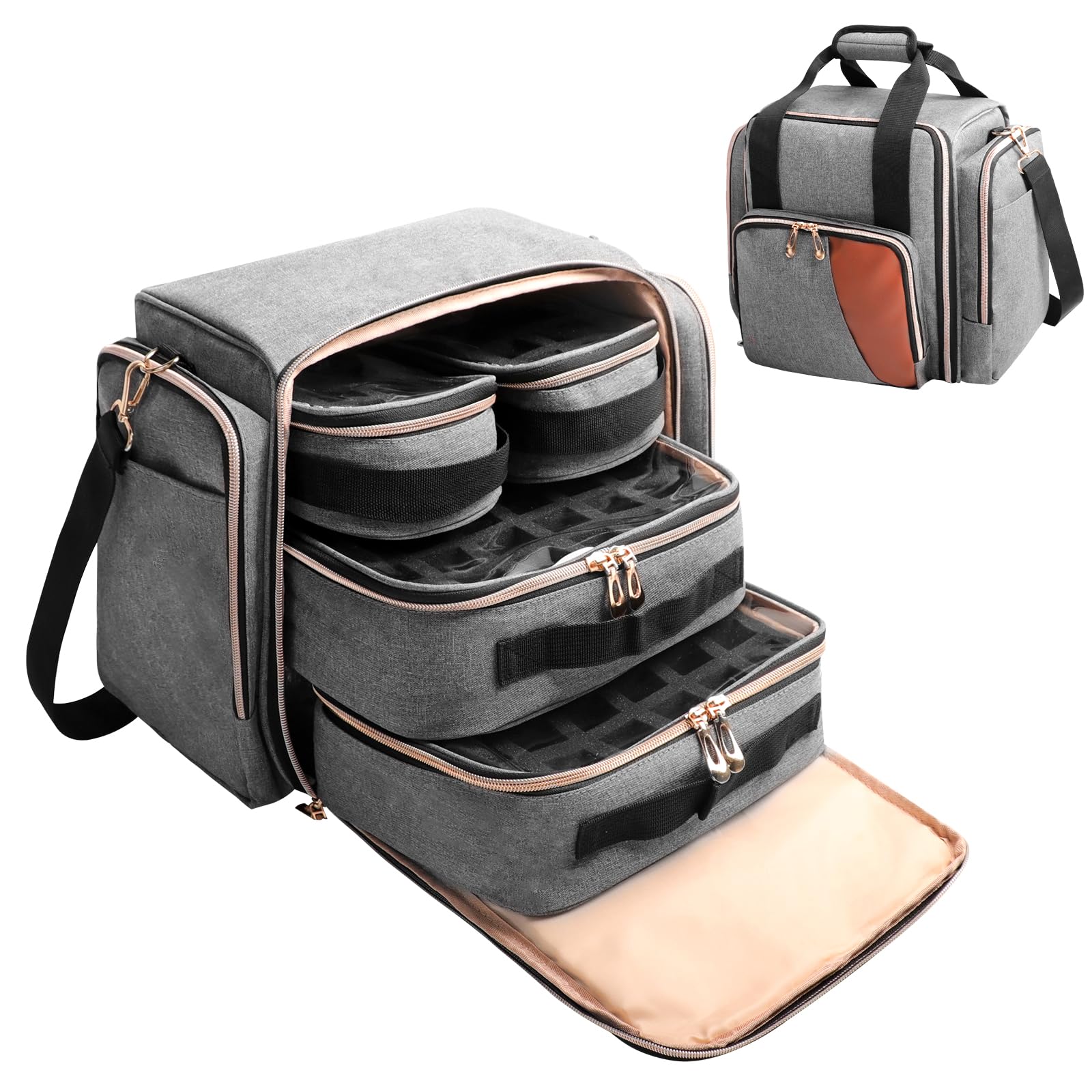 - 【3 Convenient Carrying Options】Nail polish bag comes with a removable padded shoulder strap that is adjustable in length for comfortable carrying. Nail bag organizer case has double carrying handles with Velcro at the top. Back luggage strap design making it convenient to carry. Nail kit organizer is perfect for travelling or nail salon, it's a great gift for nail lovers and nail technicians.