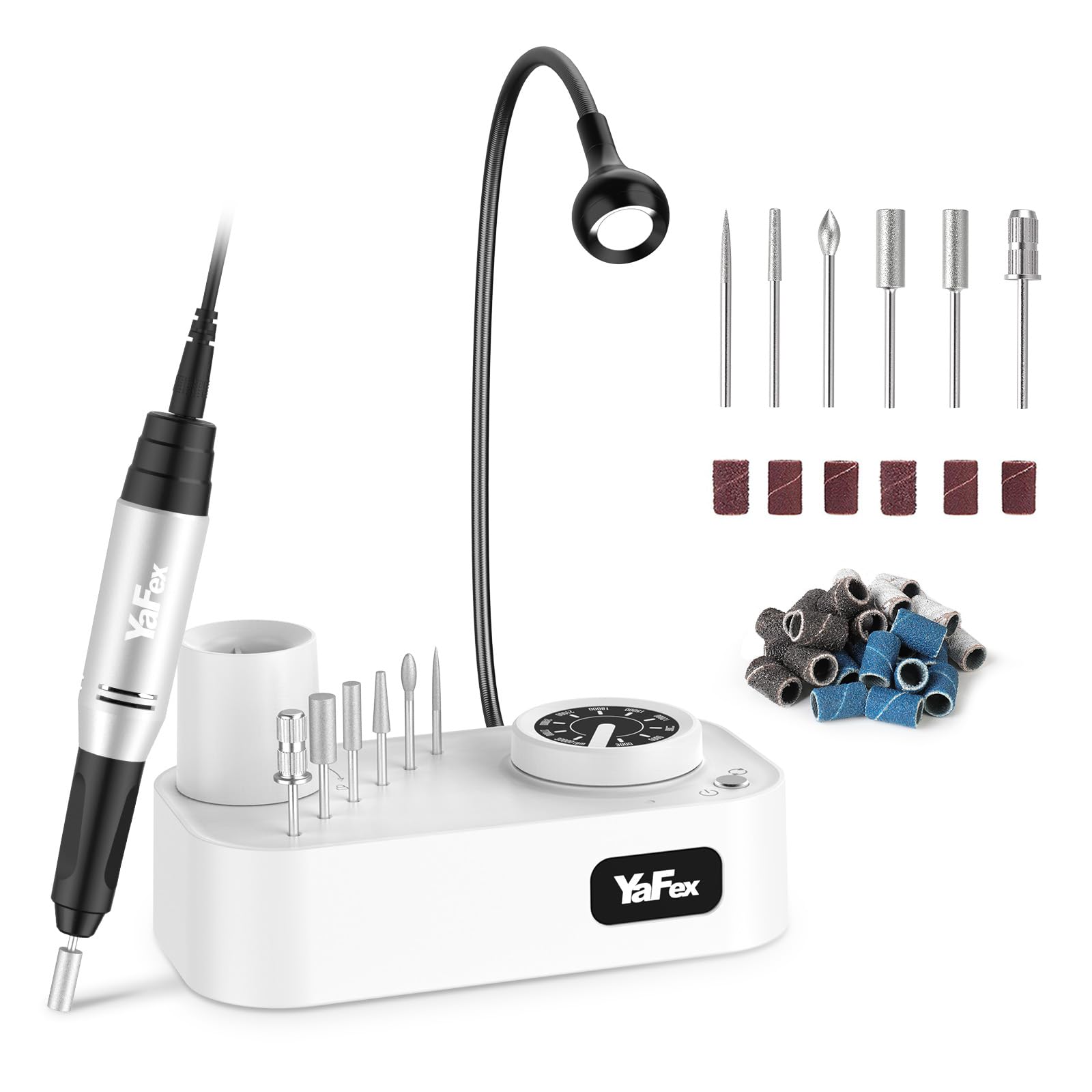 YaFex Professional Nail Drill Machine, 30000RPM Electric Nail File Drill for Acrylic Nails, Manicure Pedicure Tool Kit with a LED Lamp, 6 Drill Bits, 36 Sanding Bands for Shaping, Polishing